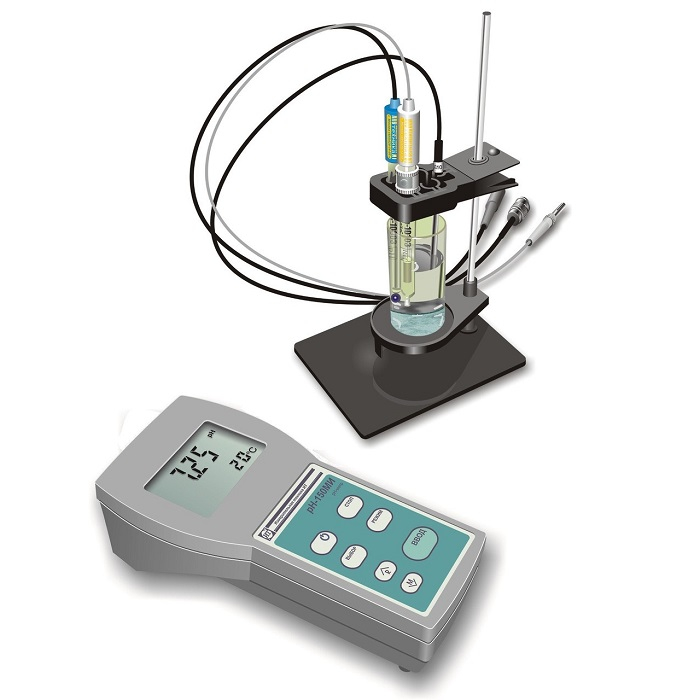 • В комплекте с иономером поставляется все необходимое для проведения измерений, в т.ч. стеклянный рН-электрод ЭС-10603/7, электрод сравнения ЭСр-10103 и штатив ШУ-05, оснащенный поворотным столиком.