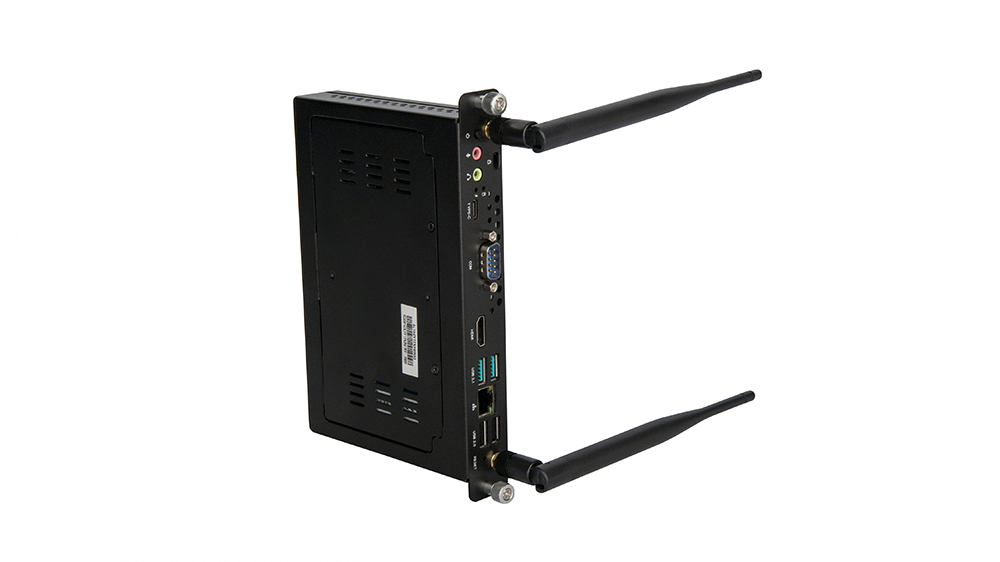 OPS – это встраиваемый модульный компьютер. Подключается через стандартный разъём в боковой части корпуса. С OPS интерактивная панель становится полноценным компьютером на Windows 10.