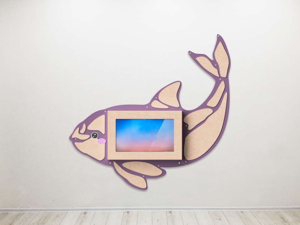 Настенная панель «Косатка» со встроенной интерактивной сенсорной панелью 32 дюйма. Это одновременно декоративное оформление стен и развивающая игрушка, ведь на панели установлен пакет игрового и обучающего ПО.