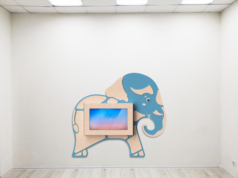 Настенная панель «Слон» со встроенной интерактивной сенсорной панелью 32 дюйма. Это одновременно декоративное оформление стен и развивающая игрушка, ведь на панели установлен пакет игрового и обучающего ПО.
