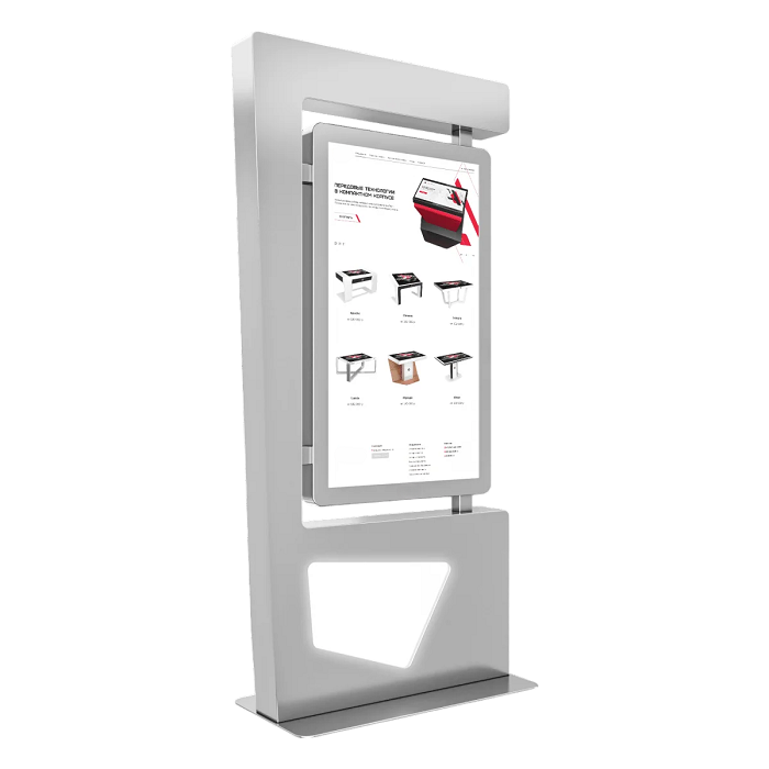 Сенсорный киоск Line 65" — это оригинальное и функциональное решение для автоматизации процессов и привлечения внимания посетителей. Минималистичный корпус с «парящим» сенсорным экраном и геометрическим основанием делает эту модель настоящим акцентом в любом интерьере.