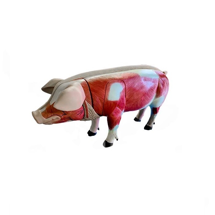 Данный учебный комплекс предназначен для подготовки специалистов ветеринарного профиля и позволяет отработать общие вопросы внешнего и внутреннего анатомического строения домашней свиньи, а также строение внутренних органов и их расположение. Данный стенд представляет из себя модель свиньи из пластика, установленную на основании в масштабе. Внутренние органы свиньи, выполненные из пластика, могут быть закреплены внутри туловища на магнитные держатели. Макет оснащен специализированными метками на каждом из органов, при поднесении специализированного считывателя начинается воспроизведение звукового фрагмента с описанием строения данного органа на русском языке а также открывается трехмерное изображение данной структуры в виртуальном атласе анатомии животного на ПК. Также в комплекте поставляется виртуальный обучающий комплекс с цифровым двойником организма свиньи с возможностью изучения анатомии и морфологии организма животного на виртуальной модели.