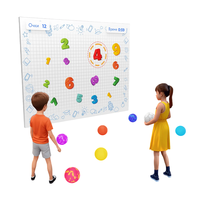 Интерактивная стена Wall - это комплекс, состоящий из компьютера, проектора, датчика и программного обеспечения, который позволяет детям взаимодействовать с ней. Данное решение предназначено для обучения и игр в детском саду, школе, развивающем центре. Она помогает развивать моторику, координацию движений, логическое мышление и воображение у детей. Кроме того, интерактивная детская стена может быть обучающей, содержащей задания и игры, направленные на обучение цифрам, буквам, формам и другим элементам образования.