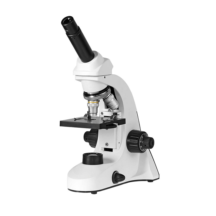 Монокулярный биологический микроскоп для исследований в проходящем и отраженном свете по методу светлого поля. Увеличение от 80х до 1280х. Револьверное устройство на 3 объектива. Механизм грубой и тонкой фокусировки. Осветители проходящего и отраженного света на светодиодах. В комплекте 3 объектива, 2 окуляра и линза Барлоу.