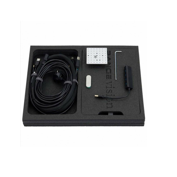 В комплект входит 3D сканер, кабель питания и комплект проводов, фиксаторы, калибровочное поле, руководство и программное обеспечение с лицензией.
