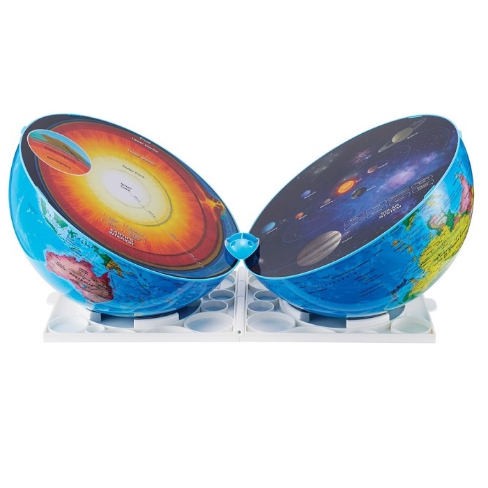 Главная особенность глобуса в съемной сфере, которая, раскрываясь, перенесет юных исследователей в космос! Устройство солнечной системы и даже строение нашей планеты – наиболее полные представления о том, как многообразен наш мир.