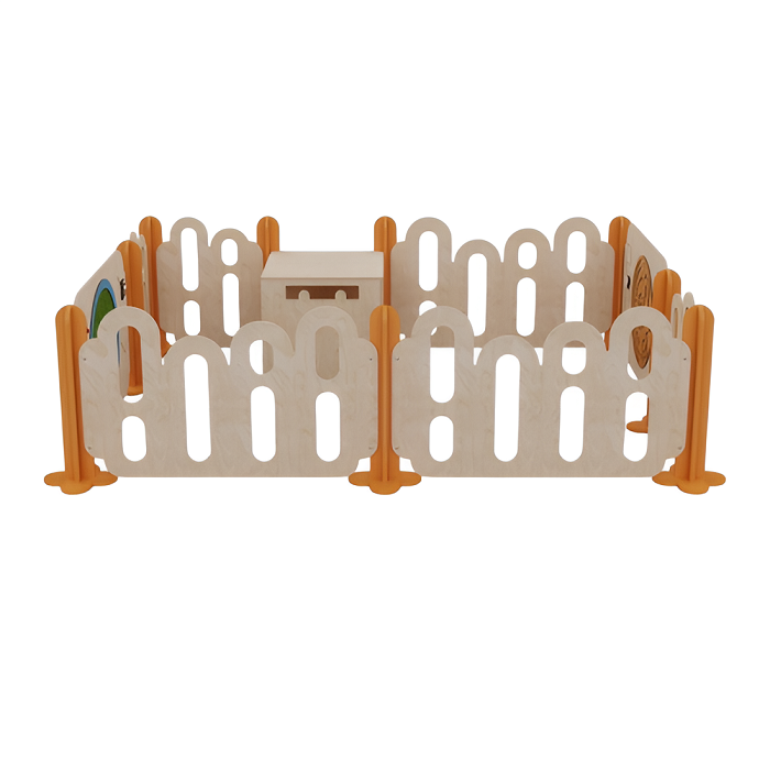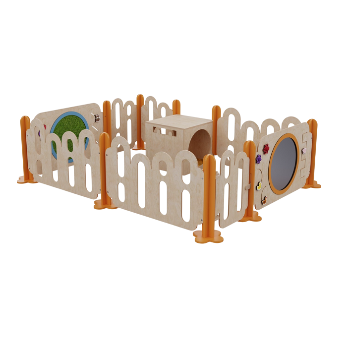 - Широкие сквозные отверстия модулей манежа (70-80 мм) дают хороший обзор педагогу и не позволяют застрять ручкам и ножкам малышей.