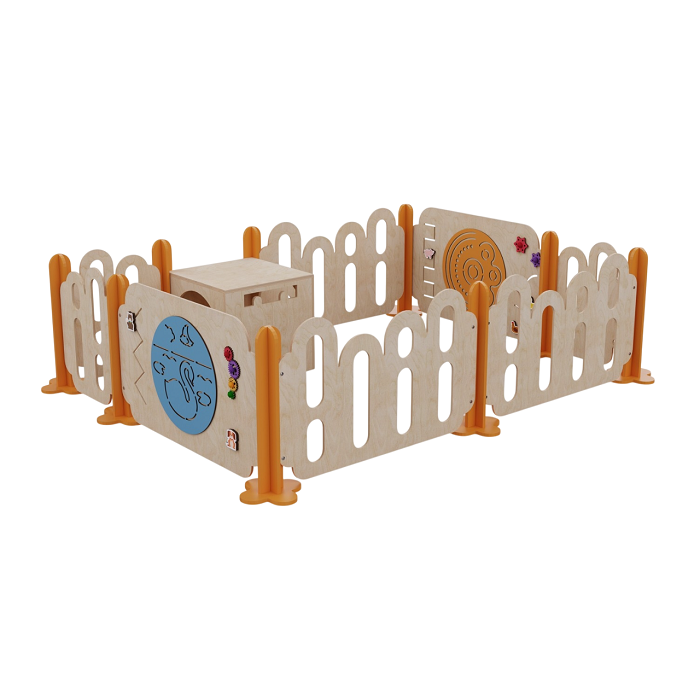Манеж обеспечивает безопасность малышей, а дополнительные элементы конструкции — куб и бизиборды — расширяют игровое пространство и способствуют развитию координации, моторики и фантазии.