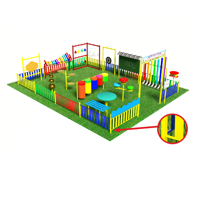 Комплекс предназначен для установки на территории детского сада, прост в использовании и подходит для занятий круглый год.