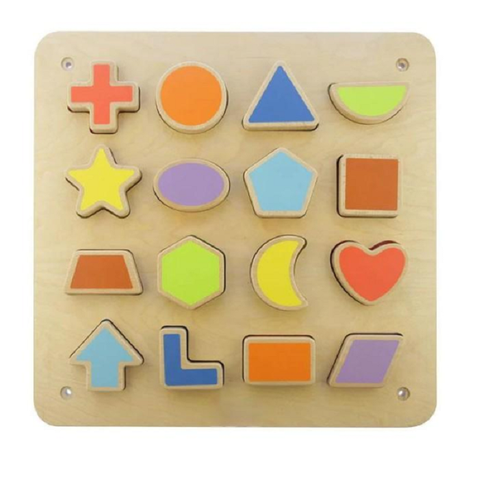 Панель помогает детям изучать цвета и геометрические формы. Магнитную доску можно закрепить на стене.
