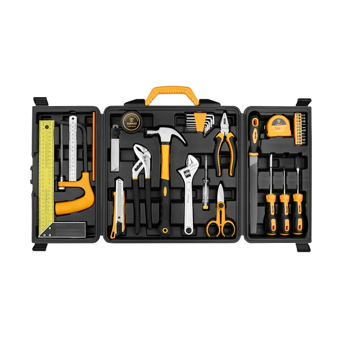Полный комплект инструмента для проведения ремонтных работ позволяет без труда наносить разметку, определять прямой угол, а также выполнять другие операции.