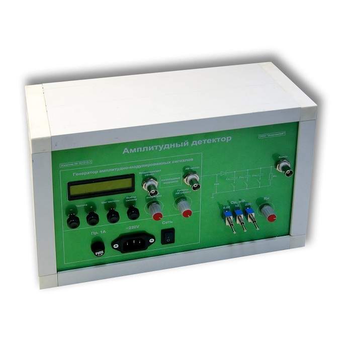 Лабораторная установка формирует одно рабочее место и обеспечивает проведение эксперимента по теме «Амплитудный детектор» учебного лабораторного практикума радиотехнических специальностей. Лабораторный модуль предназначен для изучения принципов построения схемы амплитудного детектора радиоприемных устройств. Лабораторный комплекс используется для постановки лабораторных работ и проведения практических и демонстрационных занятий по курсу «Радиоприемные и передающие устройства».