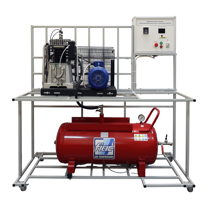 Лабораторный стенд «Термодинамические циклы поршневых машин» обеспечивает проведение лабораторно-практических занятий в учреждениях начального профессионального, среднего профессионального и высшего профессионального образования, по изучению конструкции и принципа работы поршневого компрессора, а также термодинамические процессы в поршневых машинах. Установка выполнена согласно ТУ 32.99.53–001–09519063– 2019 и имеет соответствующий сертификат производителя ГОСТ Р и сертификат качества ИСО 9001-2015 на данный вид продукции.