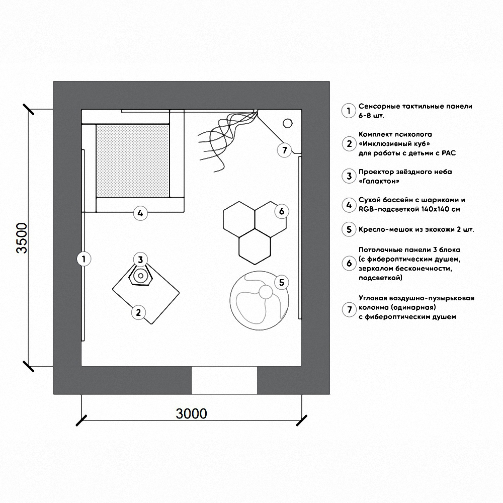 Комплект оборудования для сенсорной комнаты 10.5 м².