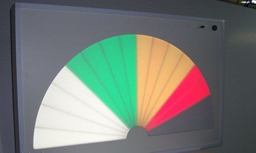 Принцип работы панели основан на изменении изображения в зависимости от уровня громкости звуков, издаваемых вокруг. Чем выше уровень звука, тем большее количество ячеек загорается одновременно.