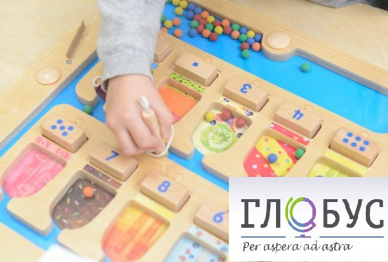 Панель представлена в виде магнитного лабиринта, на котором изображено 10 разноцветных эскимо. Используя магнитную ручку, необходимо разместить количество шариков соответствующему эскимо: по цифре или количеству точек.